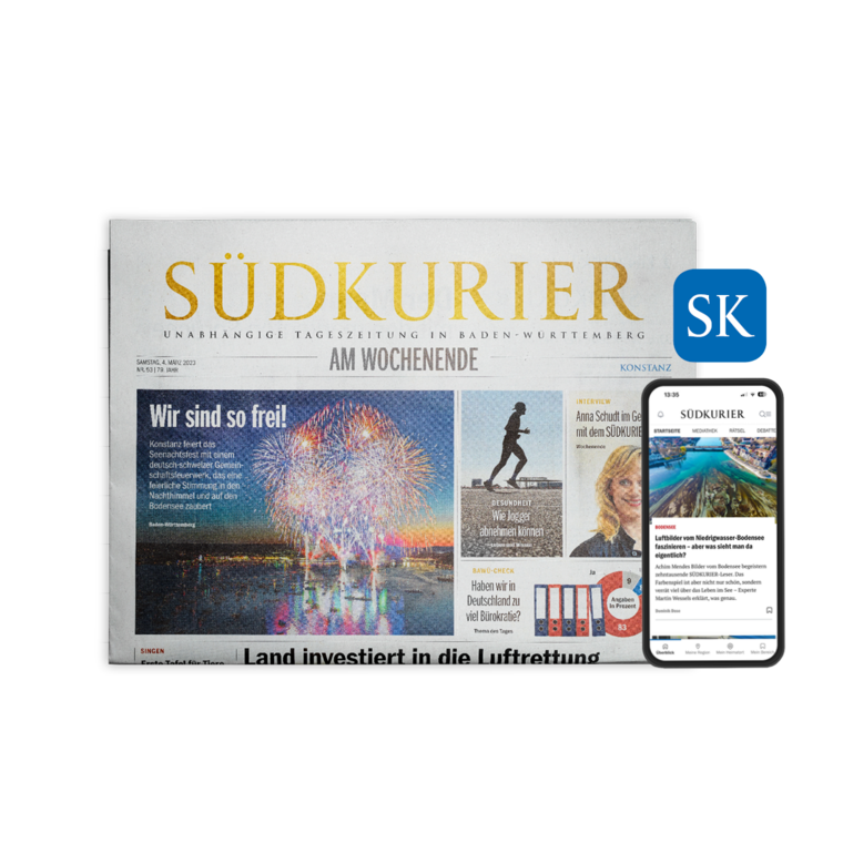 Mit dem SÜDKURIER Web & App + Wochenende-Abo bleiben Sie immer aktuell. Sie können täglich alle Artikel auf suedkurier.de und in der App unbegrenzt lesen. Es steht Ihnen die komplette Fülle an Bildern, Videos und interaktive Grafiken zur Verfügung.